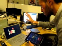 Hacked Kinect sending OSC via Processing using iPad to define planes of interest.